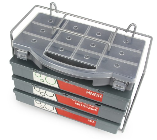 - Całość zapakowana - w bardzo praktycznych pudełeczka. Szuflady, są podpisane pomagają w szybkim odnalezieniu potrzebnej uszczelki. Sorter z uchwytem oraz możliwością zamontowania na stojaku. Dodatkowo jedno puste pudełko dzięki któremu możemy zabrać tylko wymagane oringi w niedostępne miejsca bez potrzeby przenoszenia wszystkich pudełek.