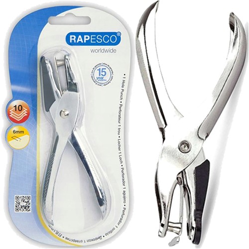 DZIURKACZ JEDNOOTWOROWY METALOWY SZCZYPCOWY 10 KARTEK 6mm CHROM RAPESCO