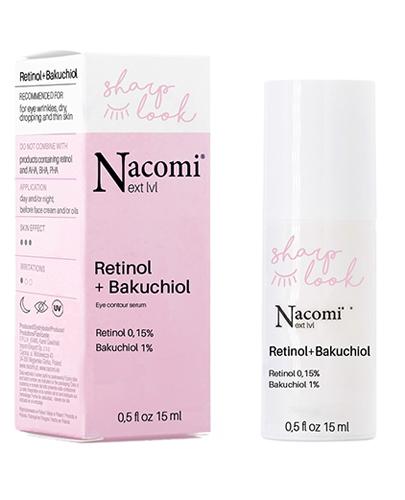 Nacomi Next Level Serum pod oczy przeciwzmarszczkowe z retinolem 0,15% i bakuchiolem 1%. Kosmetyk przeznaczony do niwelowania oznak starzenia się skóry wokół oczu.