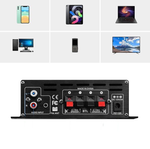 🎶🎶 【 Odbiornik Bluetooth 5.0 】 Stereofoniczne wzmacniacze audio wbudowane w bezprzewodowy odbiornik Bluetooth 5.0, które można podłączyć do różnych urządzeń Bluetooth, takich jak telefony, tablety i laptopy.