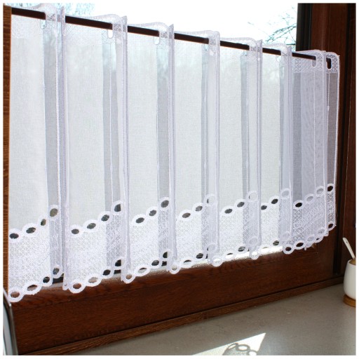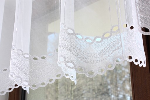 Przedmiotem sprzedaży jest śnieżnobiała firanka typu zazdrostka , tkanina trochę podobna do etaminy , batystu , lekko prześwitująca. Bardzo efektowny haftowany szlaczek u dołu firaneczki znakomicie wpasuję się w każdą przestrzeń naszego wnętrza. Firaneczkę można włożyć na patyczek od zazdrostek jak i na żabkach aby w pełni upiększyć nasze okno .