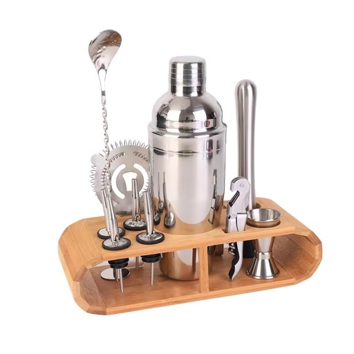 ZESTAW BARMAŃSKI PROFESJONALNY DO DRINKÓW BAMBUSOWY STOJAK 17 elementy