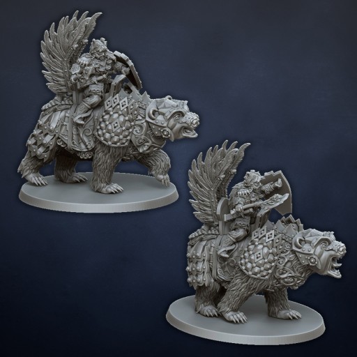 Przedmiotem oferty jest zestaw trzech modeli Bear Riders Icekander od Dragons Lake Miniatures, wydrukowanych na drukarce 3D w technologii SLA.