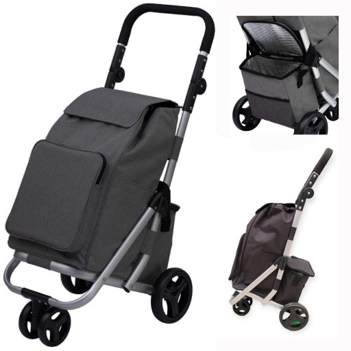 Wózek na ZigZag który można pchać przed sobą jak dziecięcy wózek. Wózek będzie doskonały dla osób starszych, które mają problem z poruszaniem się, a przede wszystkim dla tych, którzy nie mogą ciągnąć ciężkiego dwukołowego wózka. Ustawienie rączki jest regulowane dlatego możemy ustawić je tak, żeby było wygodnie. Przez to, że wózek mamy przed sobą osoby starsze mogę się na nim lekko podeprzeć. Wózek możemy także ciągnąć jak tradycyjny dwukołowy np. jak nie ma w nim zakupów. Podwozie jest 3 kołowe, tylne koła mają 17 cm średnicy i są łożyskowane, a jedno przednie jest podwójne i skrętne. Takie rozwiązanie pozwoli nam łatwo manewrować wózkiem podobnie jak wózkami w hipermarkecie. Tylne koła wyposażone są w blokadę (hamulec). Każde koło można zablokować np. podczas jazdy autobusem. Torba ma pojemność 50 L i z przodu posiada dużą kieszeń zapinaną na suwak. Z tyłu znajduje się dodatkowa odczepiania torba, która jest izolowana termicznie. Torba jest zapinana na suwak i można ją odczepić i zabrać ze sobą - posiada pasek do przenoszenia. Wózek jest składany na płasko, koła są zdejmowane dlatego po złożeniu łatwiej przewieziemy go w bagażniku w samochodzie.