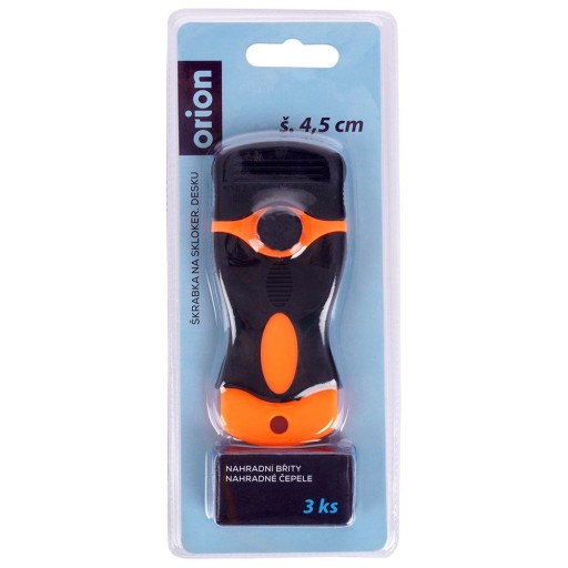 Uniwersalny skrobak do płyt ceramicznych, indukcyjnych, szyb, luster oraz innych szklanych powierzchni. Z jego pomocą w łatwy sposób usuniesz zaschnięte plamy z płyt kuchennych. Wymienne ostrza sprawią, że odpowiednio użytkowany skrobak będzie służył długi okres czasu. Oryginalny produkt czeskiej marki Orion. Wyprodukowano zgodnie z europejskimi standardami.