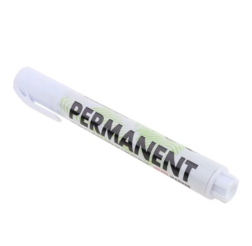 Permanentny marker w kolorze białym z wodoodpornym, nietoksycznym, szybkoschnącym tuszem. Przeznaczony jest do wykonywania napisów po różnych powierzchniach np. papierze, kartonie, metalu, drewnie, szkle, plastiku, stali i oponach. Doskonale sprawdzi się w domu, biurze, czy warsztacie. Produkt wyposażony jest w plastikową obudowę i skuwkę z krókim klipsem, umożliwiającą wpięcie w kieszeń. Tusz wykorzystany w markerze jest nieblaknący i niezmywalny, cechuje go wysoka odporność na wodę i promieniowanie UV.