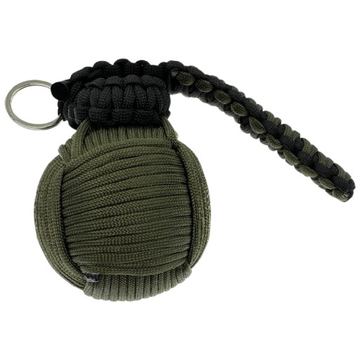 Solidne wykonanie: Granat został zaprojektowany tak, aby wytrzymać ekstremalne warunki terenowe. Plastikowa kula składana, która zawiera w sobie wszystkie akcesoria, jest otoczona solidną linką paracorde o grubości 4 mm, co zapewnia nie tylko niezawodność, ale również unikalny wygląd, który przypomina tradycyjny granat. Co więcej, granat zwijany jest ręcznie, a nie maszynowo, co dodaje mu osobistego, ręcznie wykonanego charakteru.