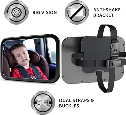 Dzięki rozmiarom 28,9 cm x 18,7 cm lusterko wsteczne dla dziecka Akapola zapewnia rozszerzone pole widzenia, dzięki czemu możesz mieć oko na swoje dziecko podczas jazdy, łatwiej i bezpieczniej