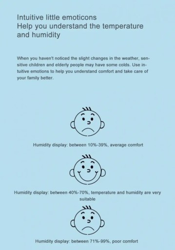 - Air omfort indicator: Level icons indicate air comfort, great for monitoring family's living conditions and health.