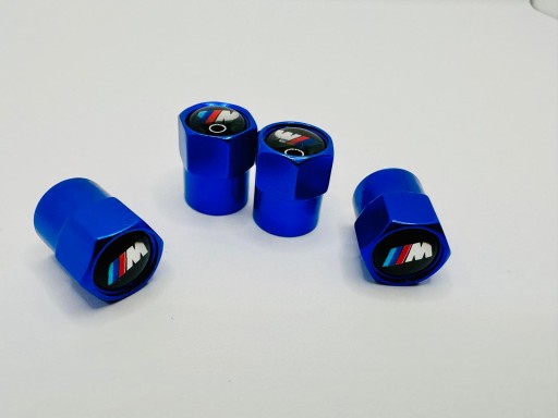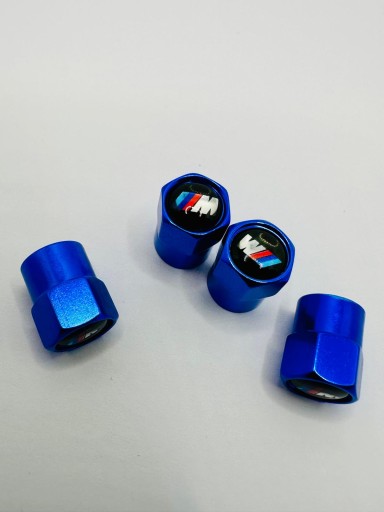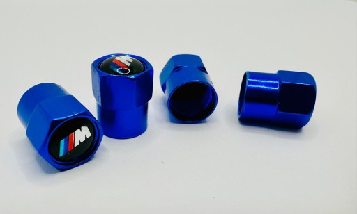 Zestaw 4szt nakrętek w kolorze niebieskim na wentyle samochodowe z oznaczeniem MPOWER