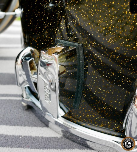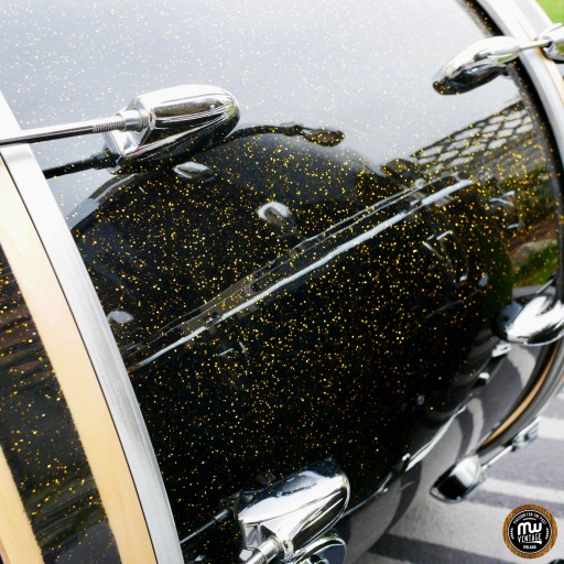 Bębny po kapitalnym remoncie u Fat Flying Drums. Nowy lakier Anniversary Black Sparkle (według oryginalnego wzoru z lat 50 i z 2022), poprawione krawędzie, środki pomalowane na nowo identyczną, szarą farbą.