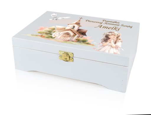 PUDEŁKO PAMIĄTKA PIERWSZA KOMUNIA ŚWIĘTA Z NADRUKIEM I GRAWEREM