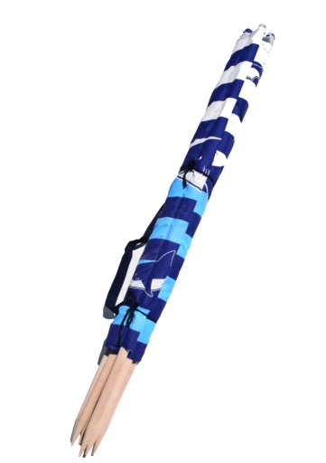 Posiada taśmę do noszenia na ramię oraz 2 sznureczki do wiązania zwiniętego parawanu, wykonany z materiału – MIKROFIBRA. Każdy kijek jest przymocowany do materiału co zabezpiecza przed ich wypadaniem.