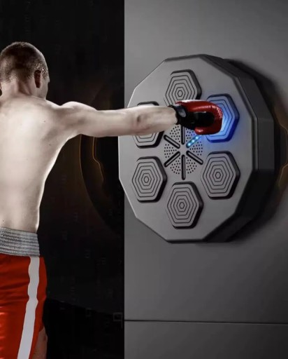 Montowana na ścianie tarcza bokserska ma 6 punktów uderzeniowych, które mogą zapalać się losowo, aby trenować reakcję.