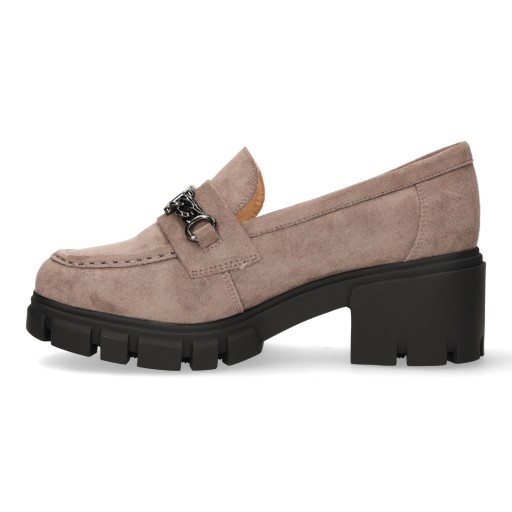 MOKASYNY DAMSKIE VINCEZA BEŻOWE ZAMSZOWE PÓŁBUTY NA OBCASIE
