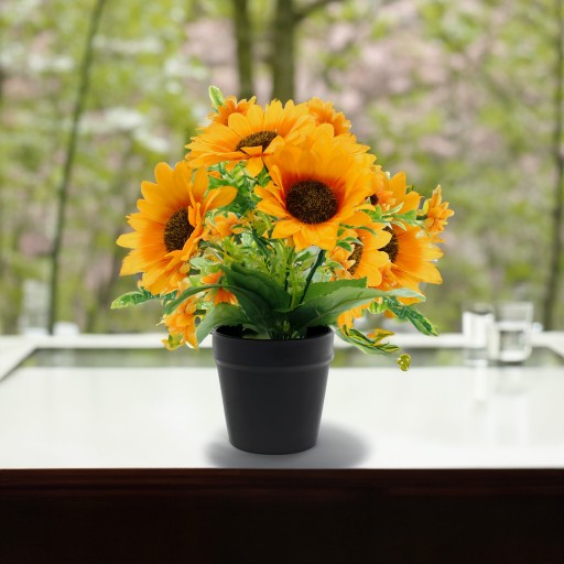 Искусственные цветы в горшке, подсолнухи, КРАСИВОЕ УКРАШЕНИЕ.