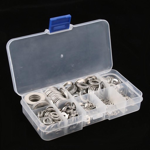 Zawiera 9 rozmiarów powszechnie używanych podkładek płaskich: