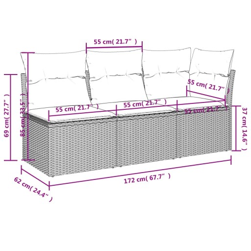 SOFA OGRODOWA Z PODUSZKAMI 3-OSOBOWA CZARNA POLIRATTAN