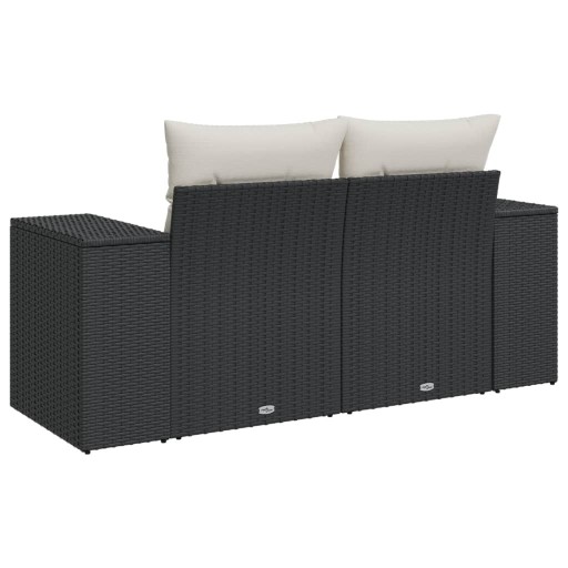 2-МЕСТНЫЙ САДОВЫЙ ДИВАН С ПОДУШКАМИ, ЧЕРНЫЙ ПОЛИРАТТАН