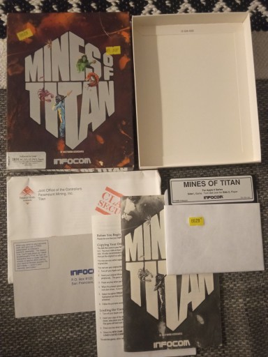 MInes of Titan. Wydanie UK box, wersja ang. Dyskietka nietestowna, na platformę Apple II (box od wydania PC).