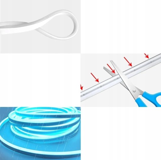 2️⃣Taśmę NEON można ciąć i łączyć ( należy zrobić to bardzo uważnie żeby nie uszkodzić taśmy NEON