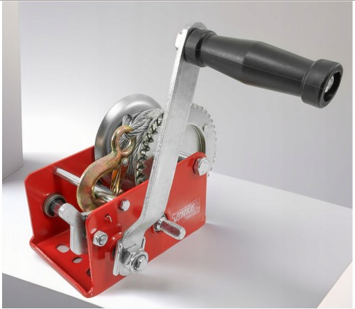 Jest to wyciągarka o mocnej stalowej konstrukcji, przeznaczona do wyciągania małych łodzi, skuterów wodnych, quadów, małych pojazdów itp. Posiada łatwo dostępną dźwignię zmiany kierunku obrotów: zwijanie/rozwijanie. Wyciągarka została wykonana z wysokiej jakości materiałów o odpowiedniej trwałości-stal konstrukcyjna oraz odlewany hak ze sprężyną zwrotną. Do sterowania urządzeniem służy ręczna korba razem z mechanizmem zapadkowym, te właściwości umożliwiają wciąganie i opuszczanie przedmiotów. Może służyć między innymi do naciągania siatki ogrodzeniowej, wiązania, mocowania i przeciągania ciężkich i dużych przedmiotów.