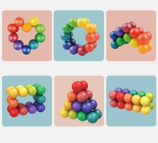 - Wieloaspektowa Zabawa: Układanka logiczna składa się z różnokolorowych kul, można tworzyć różnorodne wzory i kształty, zapewniając niekończącą się zabawę.