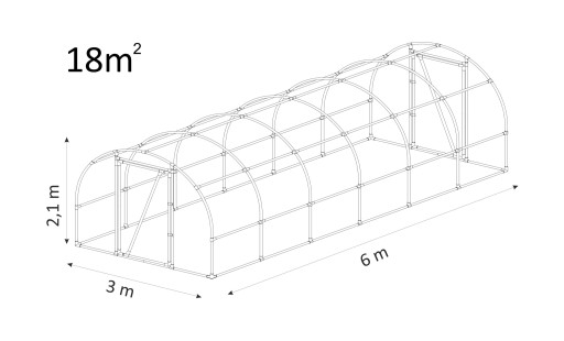 Tunele foliowe produkowane są z białych rur PVC o średnicy 32 mm. Wzmocniona konstrukcja z PVC nie ulega korozji i jest odporna na wysokie i niskie temperatury. Konstrukcja bez folii może pozostać na działce przez zimę. Odległość między pałąkami 0,96 m. Obustronnie umieszczone drzwi zamykane na klamkę.