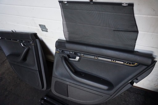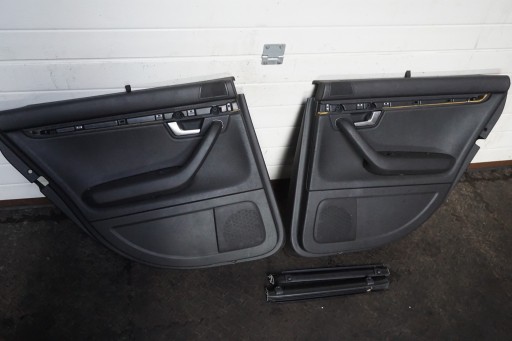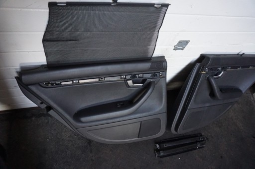 Na sprzedaż boczki drzwi do Audi A4 B6 / B7 w czarnej skórze. Wersja z roletkami. W komplecie zestaw mocowań.