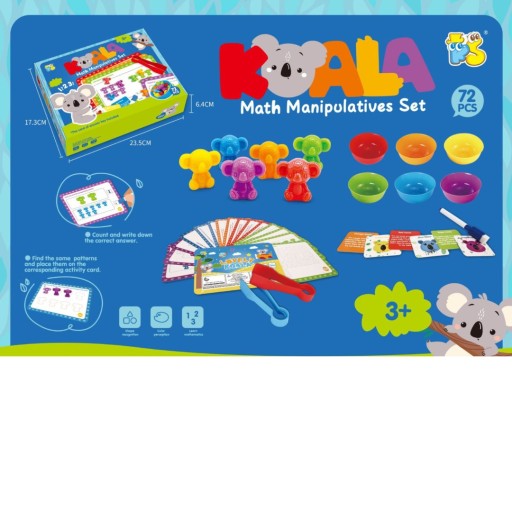 Zestaw zachęca dzieci do nauki w sposób interaktywny. Wciągający motyw zwierzątek - koala przyciąga uwagę maluchów, a jednocześnie rozwija ich zdolności matematyczne i rozpoznawanie kolorów.