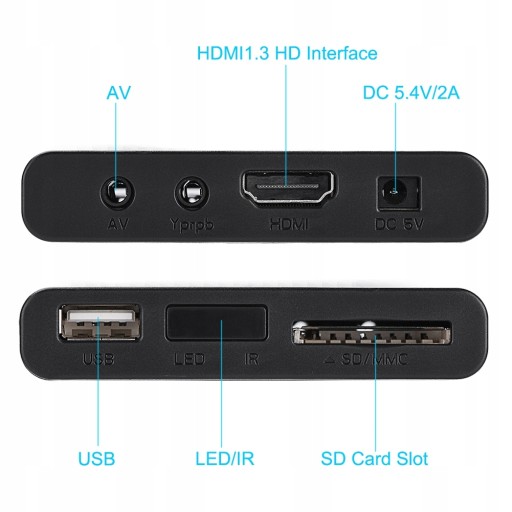 Interfejs wyjściowy Kompozytowe wideo AV, wyjście kolorowe PrPbY, lewy i prawy kanał, interfejs HDMI hd.