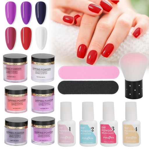 ✅Zestaw do zanurzania paznokci, w tym 6 kolorów proszku do zdobienia paznokci, a także niezmywalny lakier nawierzchniowy, podkład, środek osuszający, płyn do czyszczenia pędzli, akcesoria do pędzli itp., kompletny zestaw, zapewniający lepsze wrażenia ze zdobienia paznokci.