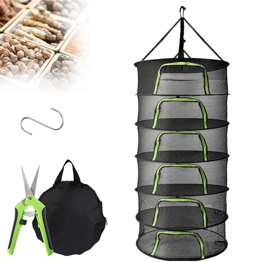 💨 Siatka suszenia wykonana jest z oddychającego materiału nylonowego o odpowiednio dużych otworach. Dzięki perforowanej strukturze materiału zapewnia skuteczną cyrkulację powietrza i wentylację, co umożliwia szybkie, równomierne i dokładne suszenie ziół. Każda warstwa posiada wbudowany elastyczny pierścień stalowy, który zapewnia stabilne wsparcie i nie odkształca się nawet przy długotrwałym użytkowaniu.