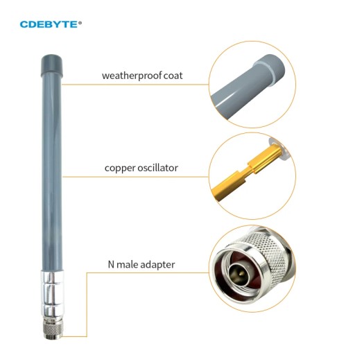 Zysk (db):3dBiNumer/Liczba modelu:TX868-BLG-26 TX915-BLG-26Nazwa marki:CDEBYTEPochodzenie:CN (pochodzenie)Frequency:860-940MHzBandwidth:915MHzSWR:Less than 2.0Polarization:VerticalRadiation Direction:OmnidirectionalInput Impedance:50ohmPower Capacity:100WSize:260mmTotal Weight:120gAntenna Diameter:20mmAntenna Material:FRP