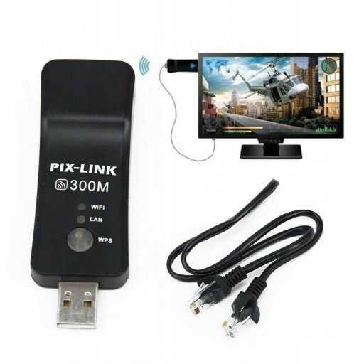 Ten klucz WiFi adaptera sieci bezprzewodowej LAN umoliwia bezprzewodowe podczenie telewizora S * MART lub smart BluRay do routera i Internetu bez koniecznoci uywania kopotliwych kabli Ethernet. 2. Dziaa nawet wtedy, gdy router znajduje si w innym pomieszczeniu lub na inne pitro ni router.3.Ciesz si strumieniowym przesyaniem treci z prdkoci do 300 Mb/s dziki temu zdolnemu adapterowi Wi-Fi.4.Po prostu podcz si do telewizora lub odtwarzacza Bluray, korzystajc z poczenia portu Ethernet i portu USB.