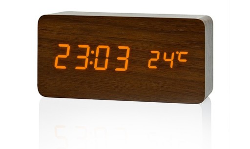 Poczuj odrobinę luksusu i innowacji, włączając zegar klaśnięciem w dłonie. Urządzenie posiada czujnik dźwięku, dzięki czemu wchodząc do pomieszczenia możesz go włączyć na odległość. Umożliwia to również oszczędzanie baterii.