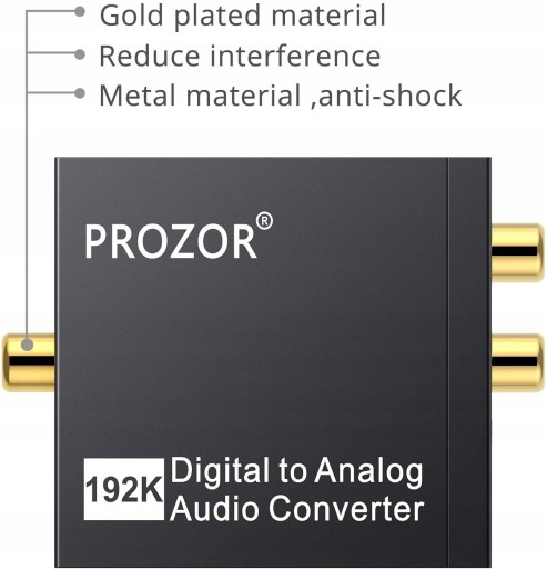 Konwerter cyfrowo-analogowy audio PROZOR 192 KHz: Konwertuje koncentryczne lub toslink cyfrowe sygnały audio PCM na analogowe audio L/R RCA i 3,5 mm Jack jednocześnie (nie można ich odwrócić)