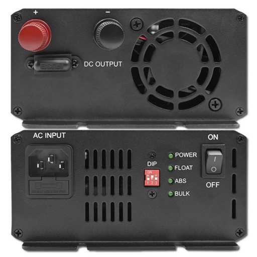 - Wyposażona w przełącznik DIP jest to element ładowarki służący do zmiany ustawień ładowania akumulatora - umożliwia ustawienie 7 różnych kombinacji SW możemy dopasować tryb ładowania, zgodny z posiadanym typem akumulatora np. ładowanie akumulatorów kwasowo-ołowiowych SLA / żelowych / AGM / flooded / wapniowych i LiFePO4 oraz tryb pracy zasilacza o stałym napięciu,