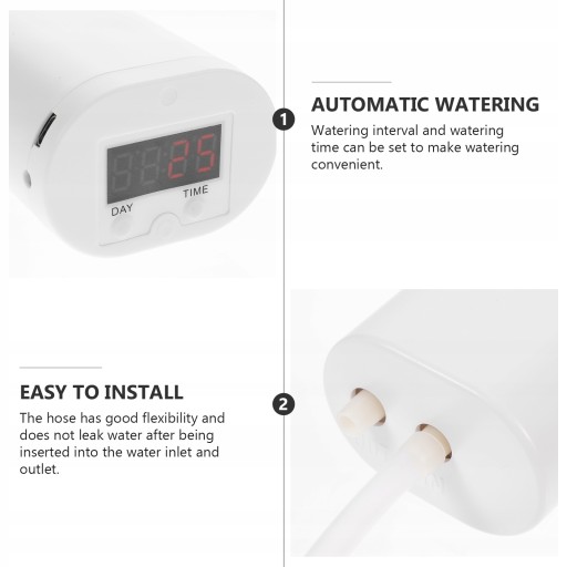 Jest to profesjonalny zegar do podlewania ogrodnictwa dla twoich kwiatów i roślin. Wykonany z materiału, jest trwały do użytkowania w czasie. Wyświetlacz na ekranie sprawia, że jest to bardzo wygodne dla Ciebie. Możesz ustawić czas podlewania, którego potrzebujesz, co jest idealne do użytku w domu i ogrodzie.