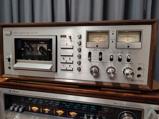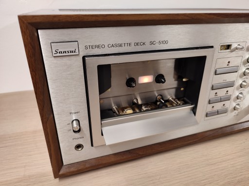 Sprzedaję piękny klasyk audio vintage Sansui SC 5100 . Magnetofon w pełni sprawny , wszystko działa zgodnie z przeznaczeniem , ponad to przeszedł przegląd w profesjonalnym zakładzie. Warto fakt przeglądu rozważając zakup brać pod uwagę , ponieważ to bardzo duży wydatek oraz nie łatwo dziś o dobrego fachowca , który znajdzie jeszcze czas. Przegląd taki w sprzęcie z epoki jest koniecznością dla prawidłowego funkcjonowania przez następne lata. Dek pochodzi ze złotej ery audio lata 70-te , dlatego wykonany jest niezwykle solidnie i precyzyjnie , jak czołg - sam metal i szkło. Drewniana obudowa zachowana również w bdb stanie jedynie malutki odprysk z tyłu dół lewa strona tył , więc praktycznie nie widoczne - to drewno więc bardzo łatwe do naprawy.