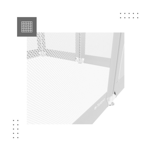 Boki kojca zostały wypełnione oddychającą, przejrzystą siatką. Dzięki temu będziesz mieć dziecko zawsze na oku, a maluch będzie czuć się bezpiecznie, obserwując otoczenie. Wysokiej jakości materiał zapewnia odpowiednią wentylację.
