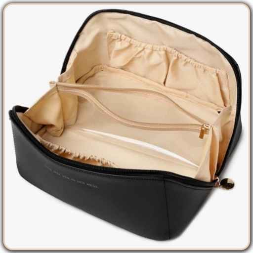 ⭐ Pojemna kosmetyczka z kieszonkami w środku, które pozwalają na łatwe układanie i segregowanie kosmetyków i akcesoriów kosmetycznych.