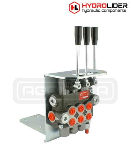- Rozdzielacz 3-sekcyjny o przepływie 40L/min sterowany dźwigniami