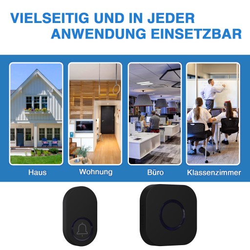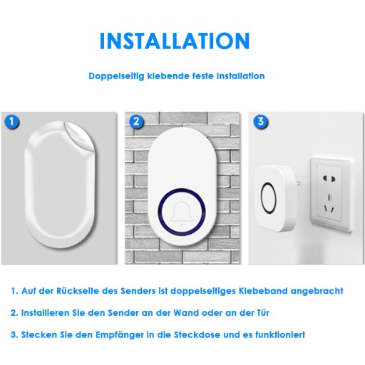 - ŁATWA INSTALACJA:☎Bezprzewodowy zestaw dzwonka do drzwi można łatwo zainstalować, mocując przycisk dzwonka do ściany bez okablowania, i można go zainstalować w dowolnym miejscu w domu, ogrodzie, biurze lub skrzynce na listy.
