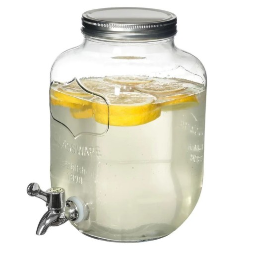 Słoik do napojów z kranikiem - świetnie sprawdza się do serwowania lemoniady w upalne dni.