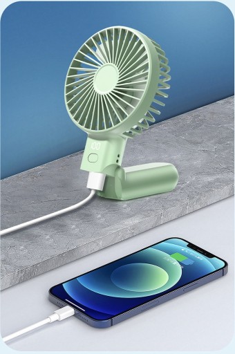 3. mini wentylator biurkowy - składany wentylator, który może być używany jako mały wentylator biurkowy po złożeniu pod kątem około 90°.