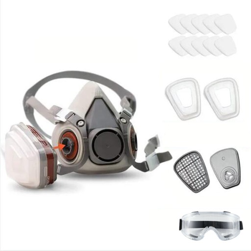 💗Maska oddechowa z filtrami, maska spawalnicza z farbą i goglami Maska gazowa wielokrotnego użytku Półmaska oddechowa