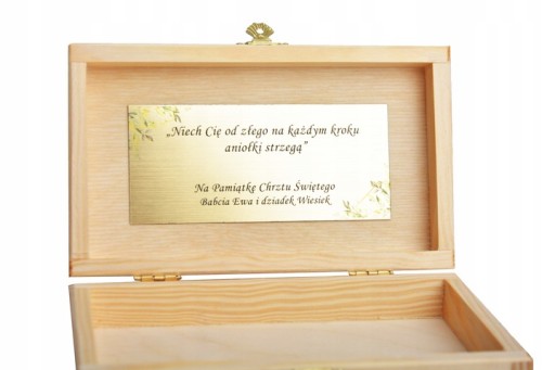 W cenie skrzyneczki jest personalizacja oprawy techniką graweru laserowego. Wykonany w ten sposób wzór jest trwały, precyzyjny i sprawia, że skrzynka staje się niezwykłą pamiątką.