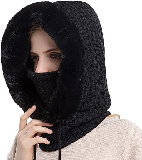 KOMINIARKA DAMSKA CZAPKA, KAPTUR, SZALIK, MASKA DO ZIMOWA CIEPŁA PLUSZOWA AKSAMITNA