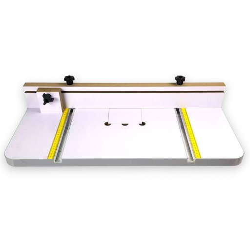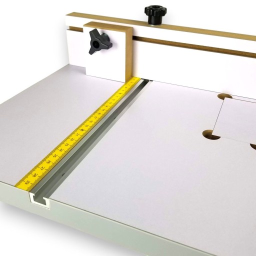 - > blat 605mm x 300mm x 25mm z wmontowanymi profilami T-track i naklejonymi miarkami
